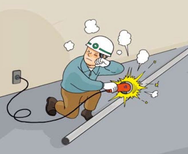 - 파이프 내 용접면 사상작업 중 핸드그라인더 전원선 피복 파손부에 접촉하여 감전으로 사망.